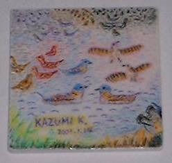 帰りに、主催の地域文化センターで、コースターの絵付けをやった。