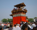 10月5日(土)〜6日(日)まで年代物のゴッツイ山車(だし)が市役所近くの整列会場に31台も勢ぞろいする。それぞれの地区を早いところでは朝6時頃から繰り出し12時の総集合に間に合わせる。まさに圧巻である。